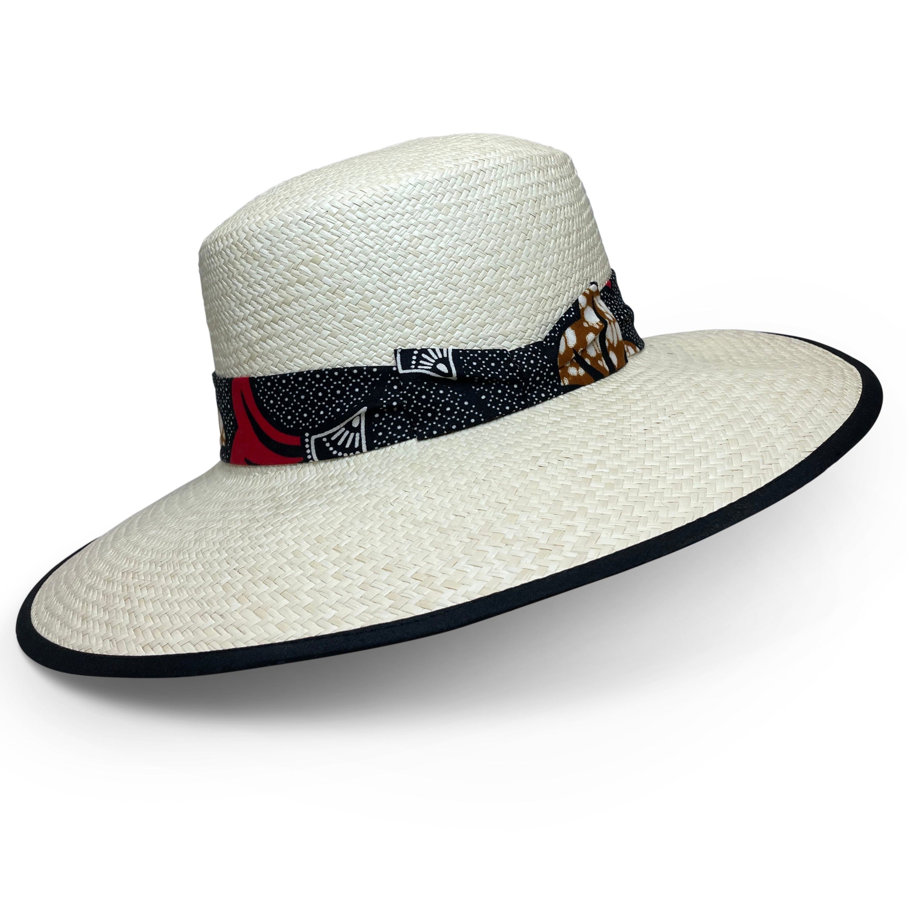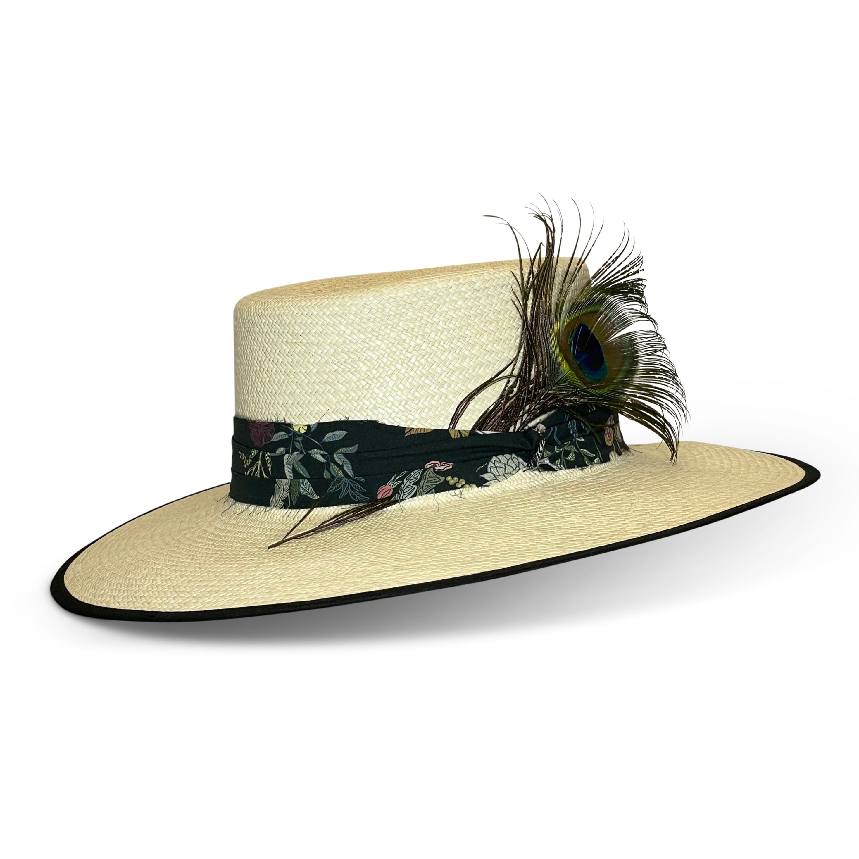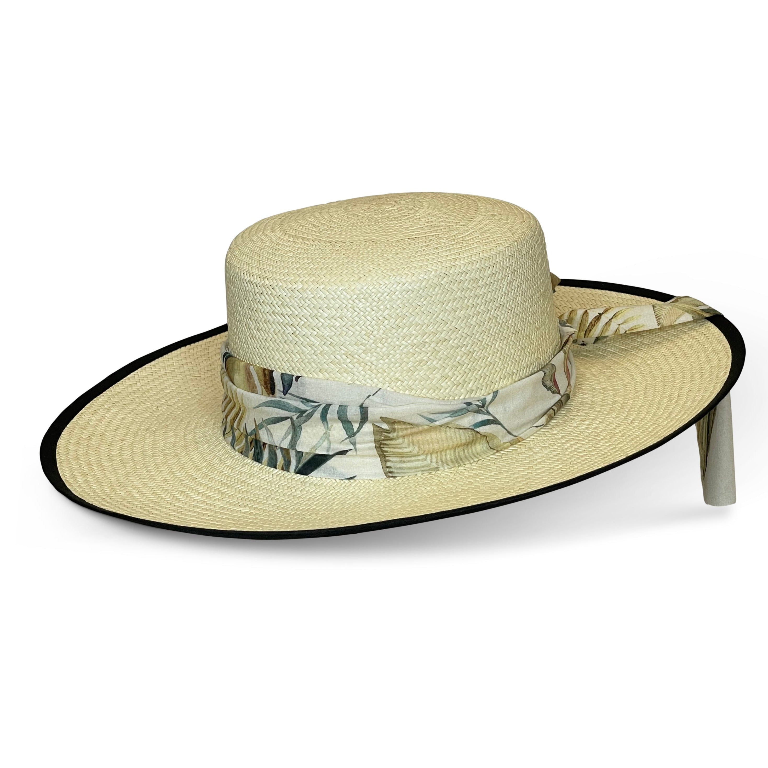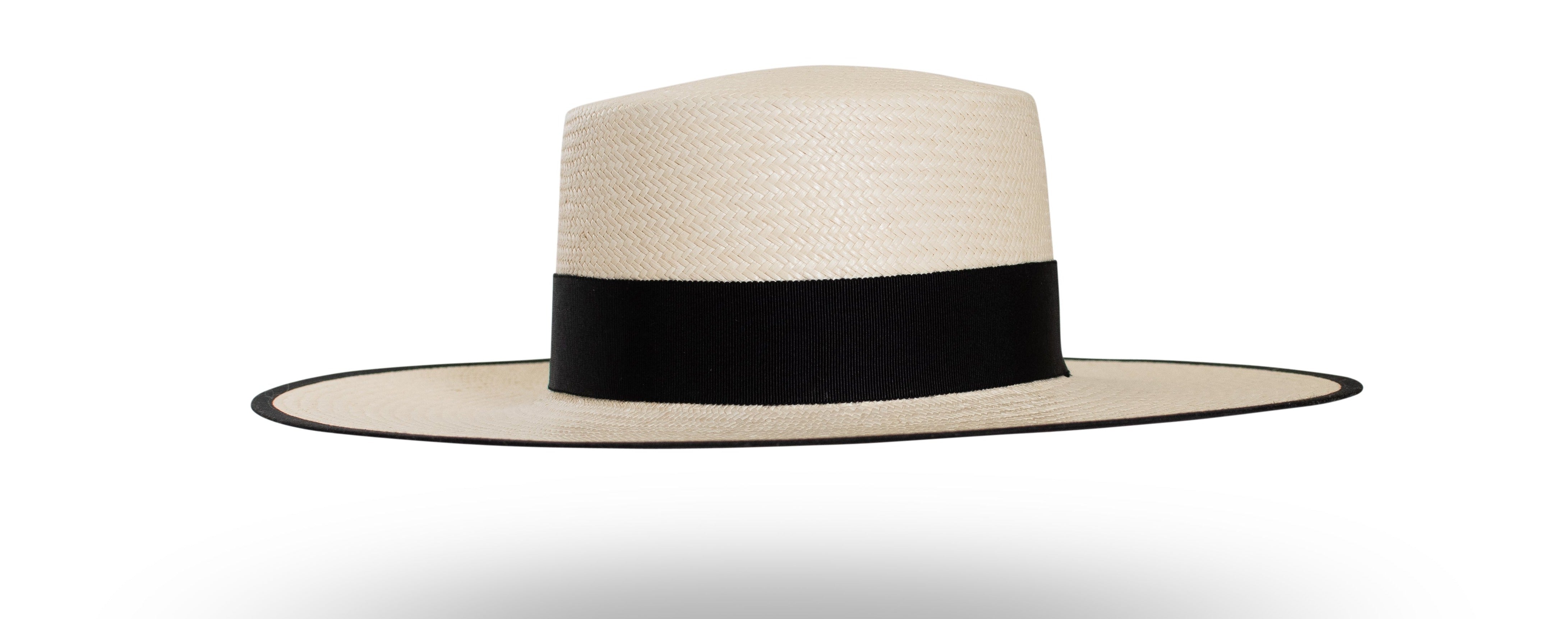 A classic spring or summer piece. The Bolero's silhouette is inspired by the hats worn by South American gauchos and cowboys. Our Boleros feature black, linen edge binding, a wide, flat brim which provides ample sun coverage, and the hatband of your choice.