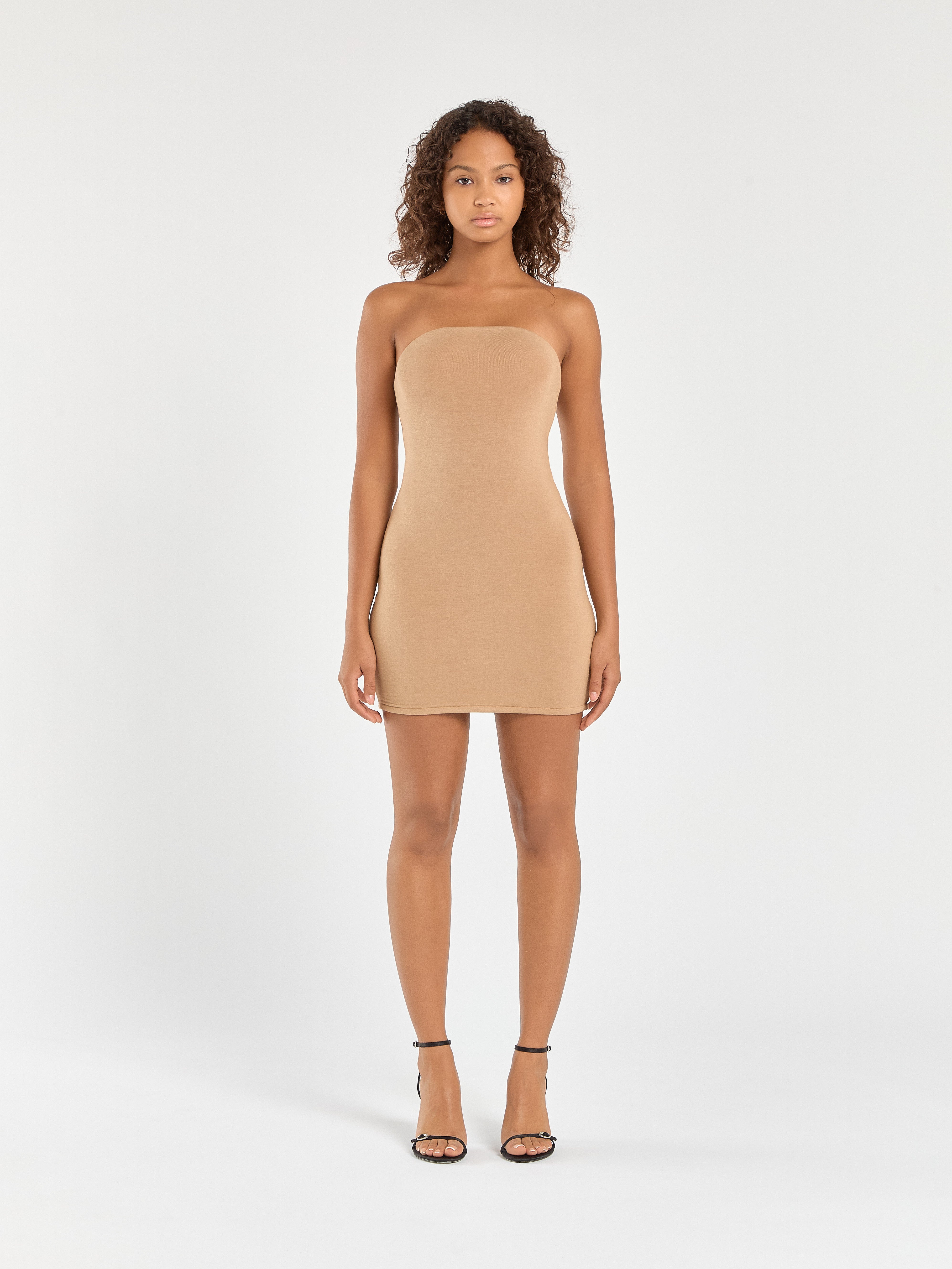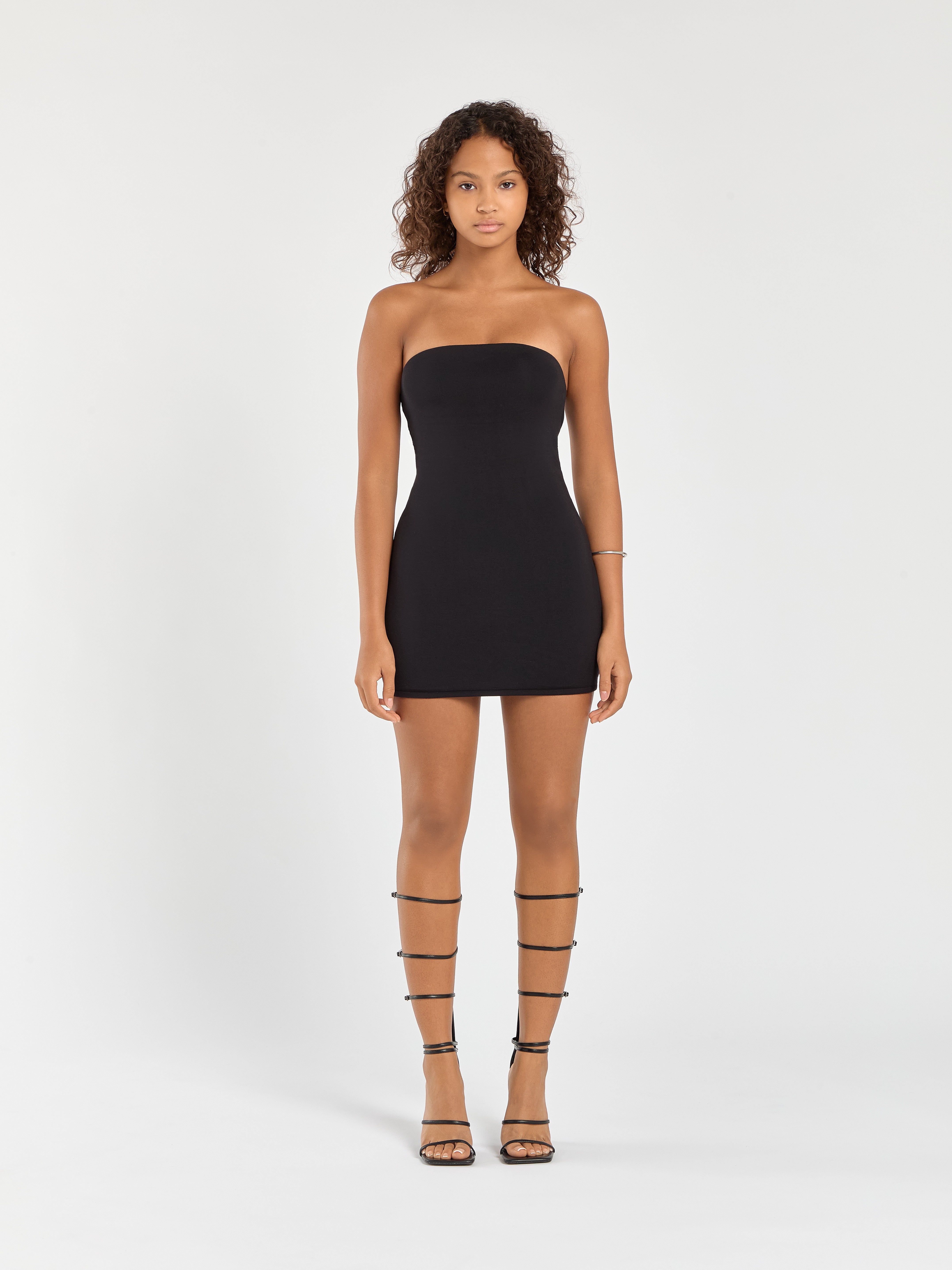 The Shape-wear Bandeau Dress in Black/Sienna Clay combines comfort and style with its sleek, minimalist design. Perfect for layering or wearing on its own, this strapless dress is a must-have for every wardrobe. Featuring grip tape along the top and bottom edges, it offers a secure fit, ensuring confidence and ease of movement.