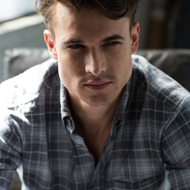 Our tailored fit plaid button down is featured in a grey/black premium cotton from Japan. Details include matching plaid lines, our signature chest pocket, and red stitch.