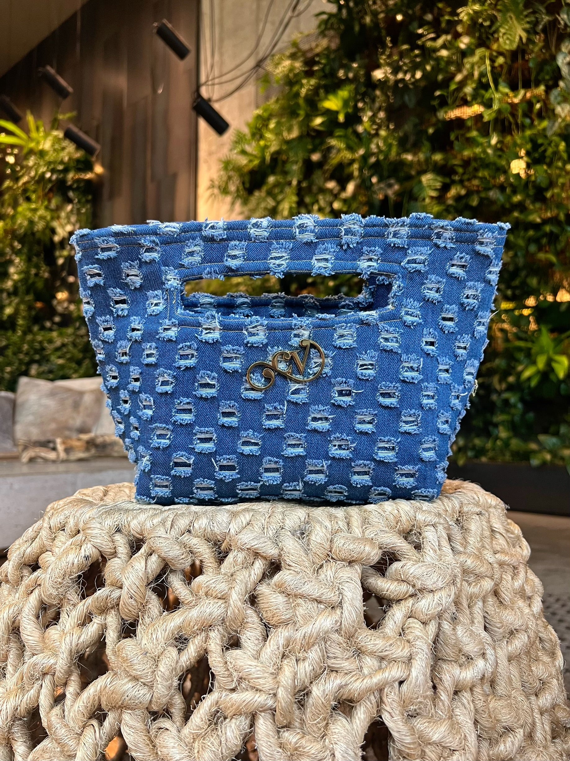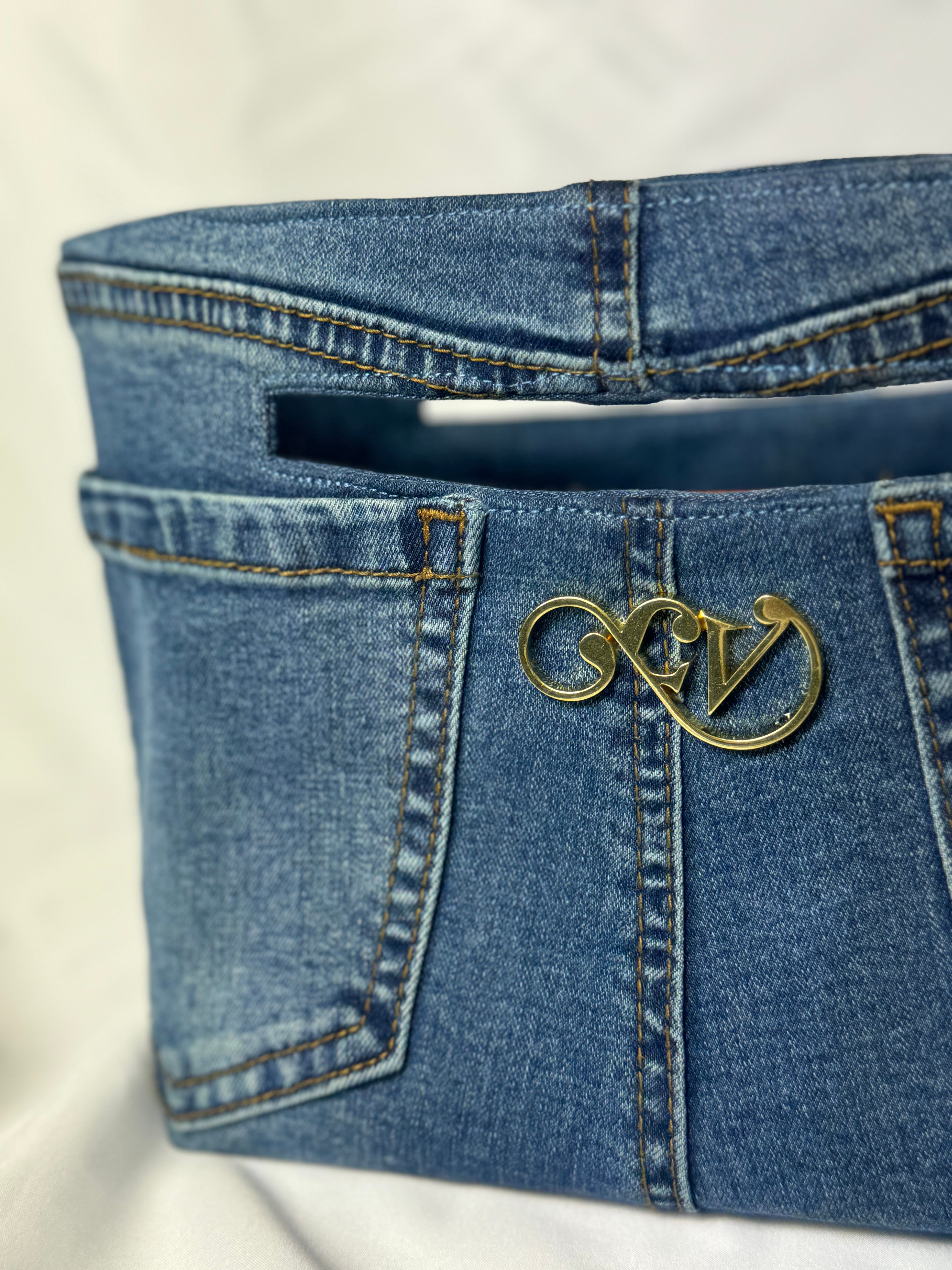 Denim Diet Janet Jammer Mini Tote Bag — Part of our exclusive Denim Diet Collection, this chic handheld mini tote is designed for both style and practicality, making it the perfect accessory for any occasion—from casual brunch outings to sophisticated evening events. Compact yet surprisingly spacious, the Denim Diet Janet Jammer adds a versatile touch to any wardrobe. Crafted from 100% cotton denim with impeccable detailing, this bag is designed and made in NYC. Order now to elevate your style for the season!