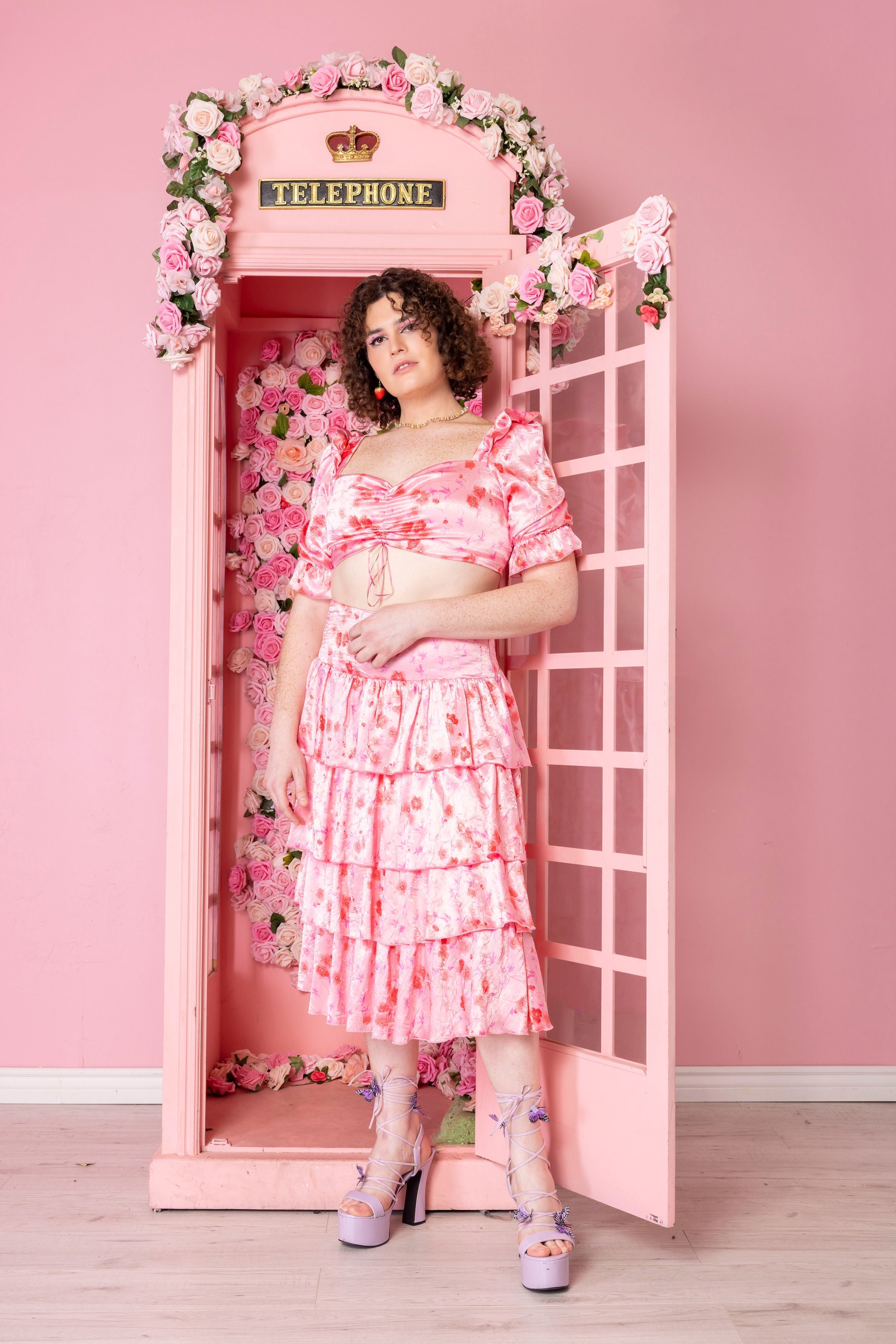 Introducing the The Keeley 2 in 1 Skirt & Dress in Cherry Blossom - created from beautiful crinkle satin floral fabric and cut in a feminine tiered silhouette, the Keeley is designed to make a statement of self expression.