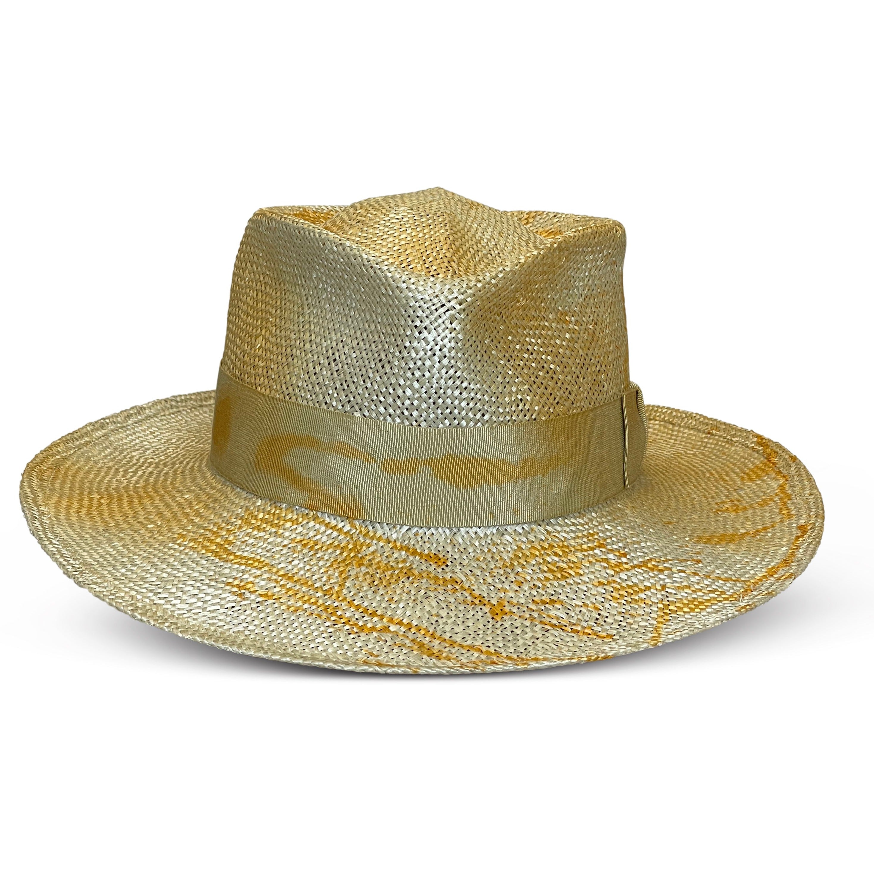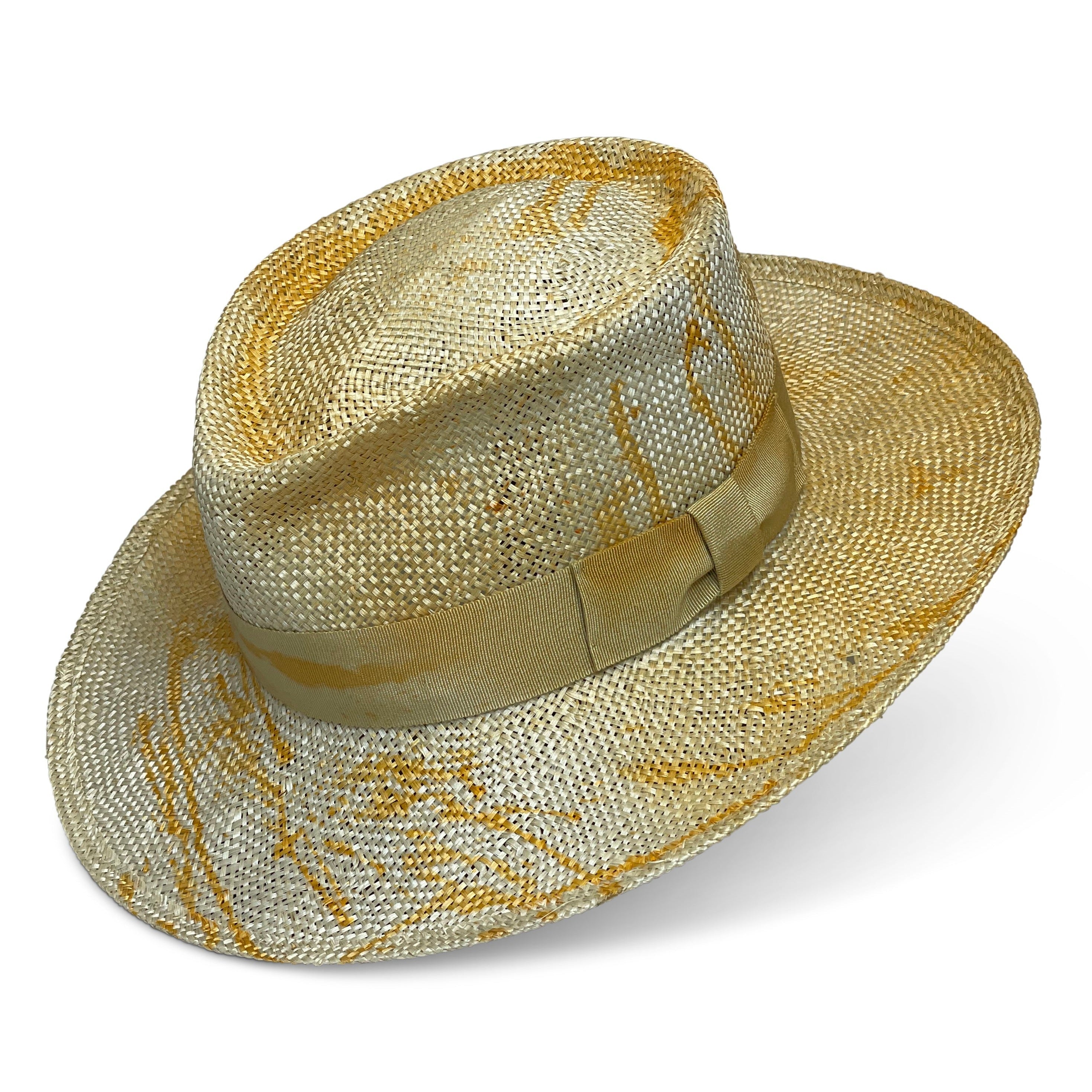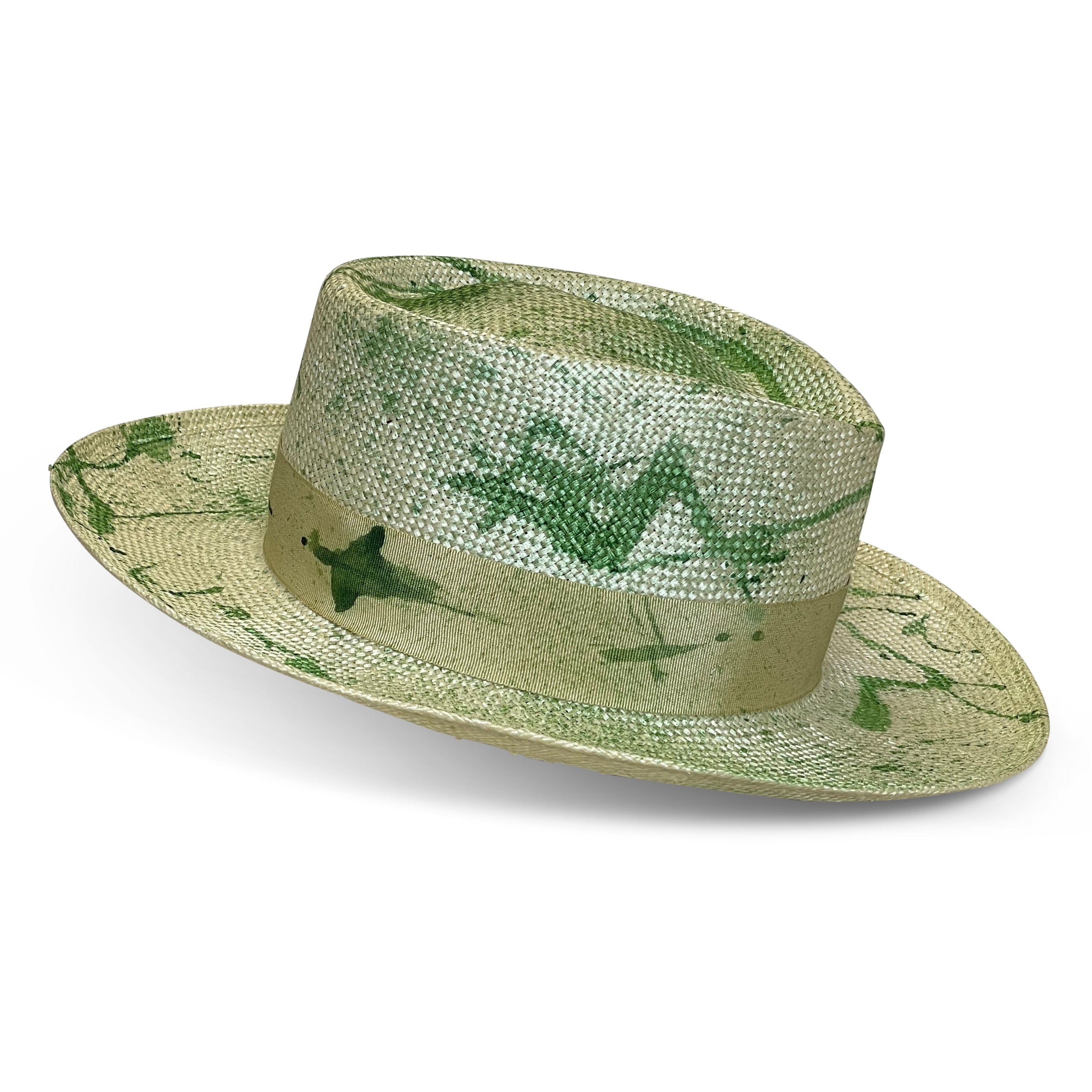 The Gambit hat gets its name from the classic Gambler Hat silhouette. This hat features a porkpie crown and splattered dye with matching hatbands.