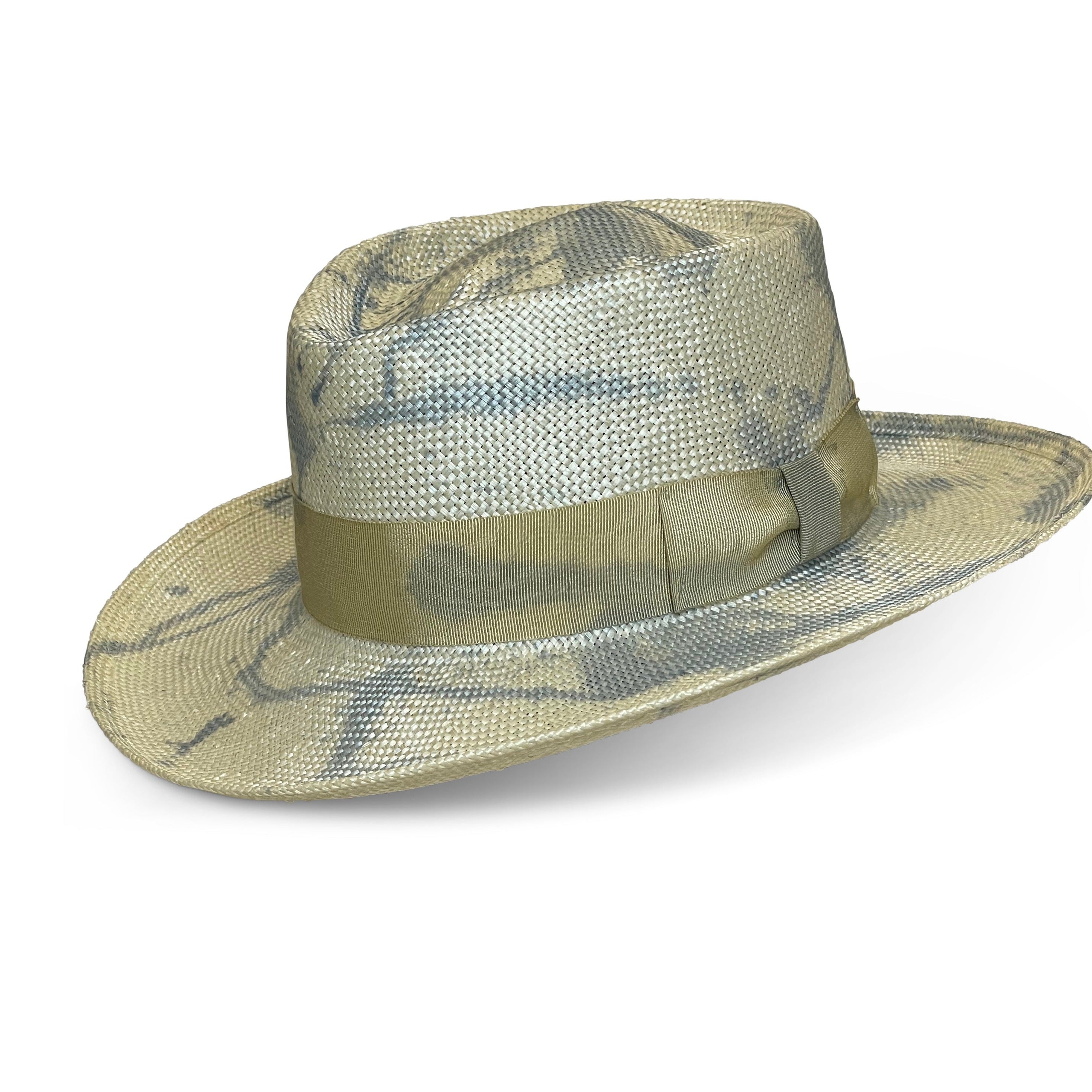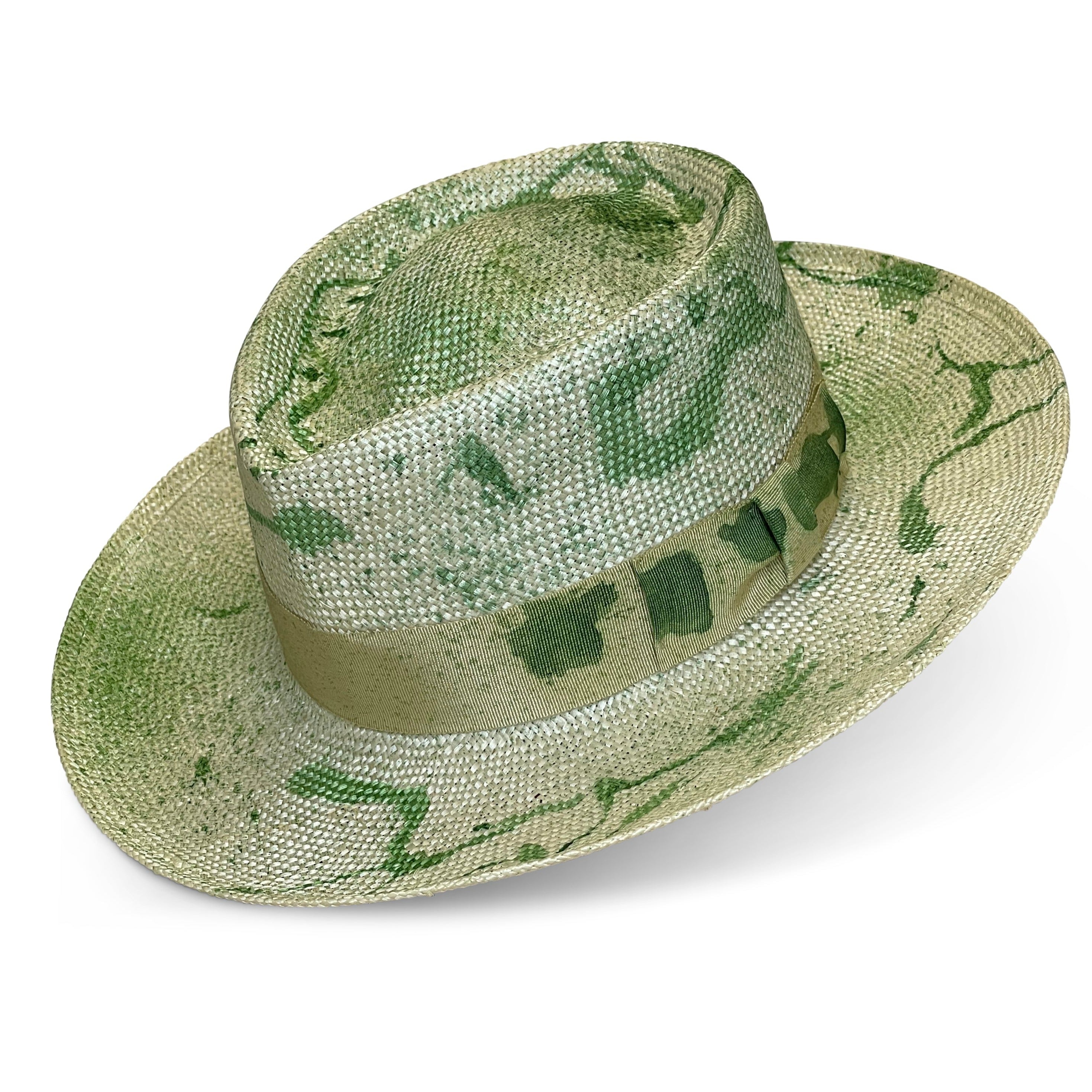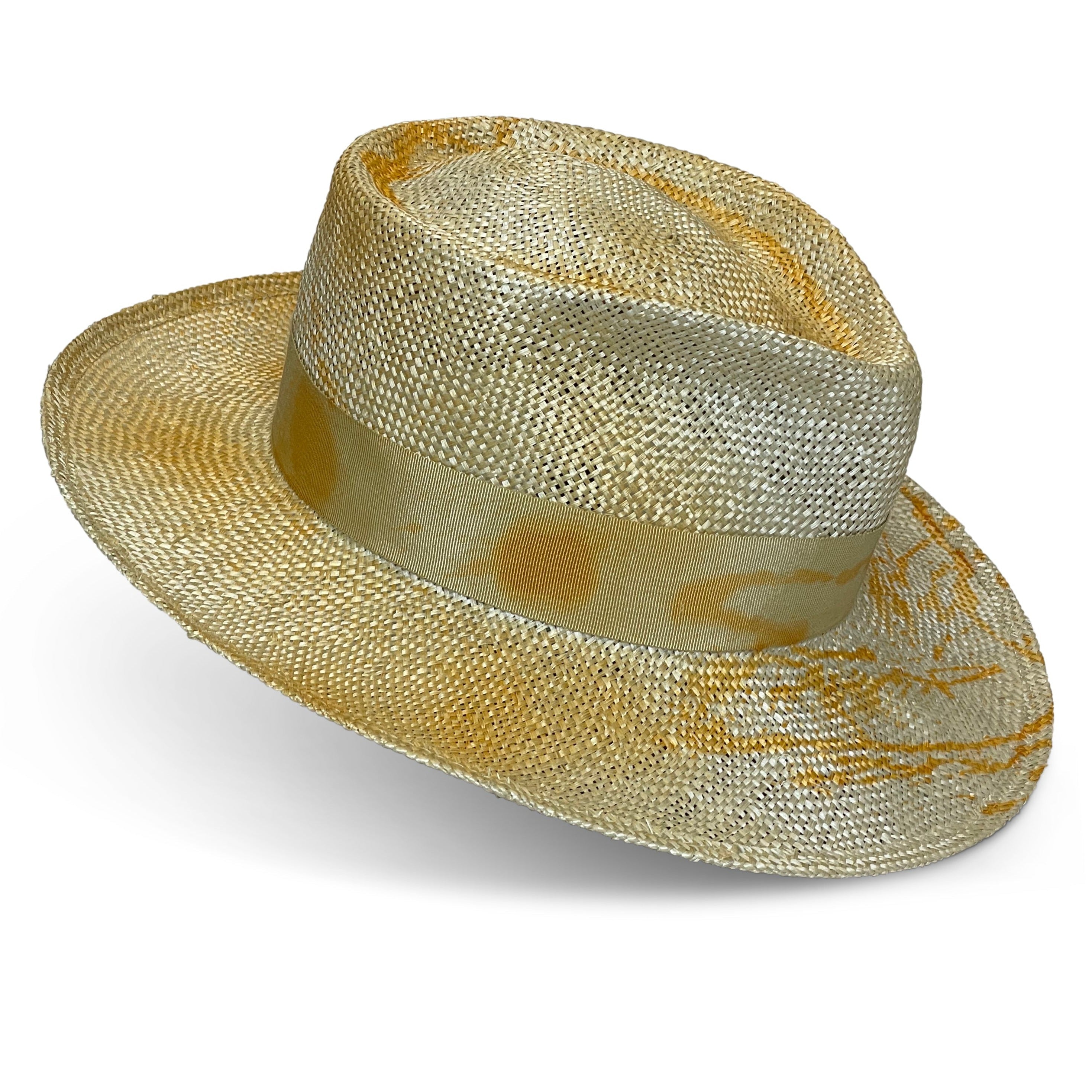 The Gambit hat gets its name from the classic Gambler Hat silhouette. This hat features a porkpie crown and splattered dye with matching hatbands.