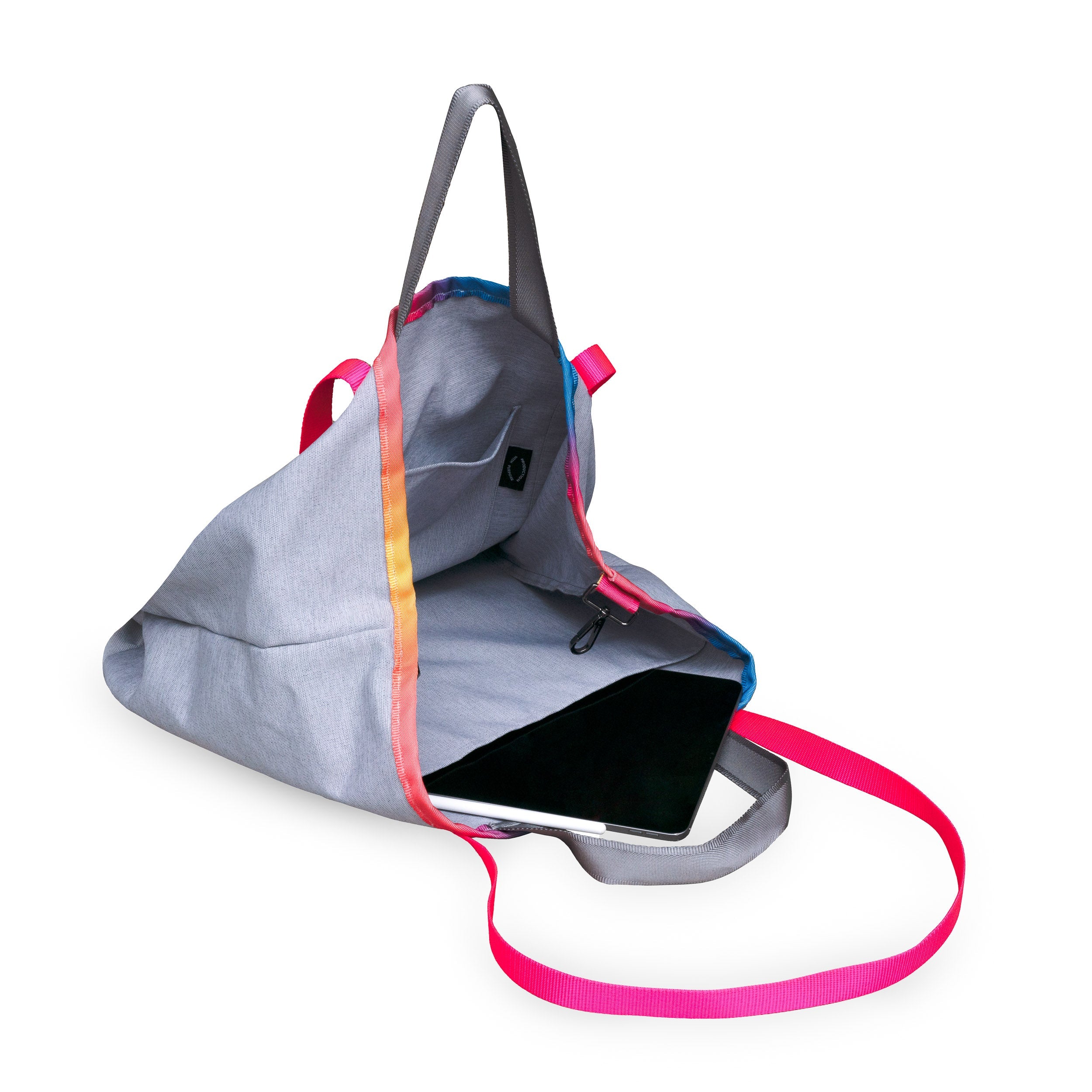 If ANDI is the hallmark of transformative accessories, Passepartout is the bold new kid on the block, making its mark and here to stay. This bag is a masterclass in versatility—expansive yet able to morph into a more compact form at a moment's notice. Whether it’s your go-to for a sunny beach day or your trusty companion to a tranquil yoga session on your way to the office, your Passepartout adjusts effortlessly. Light and easy to stow, yet spacious when you need it to be, it’s designed with a perfect blend of functionality and chic urban style. Crafted by the hardworking hands at Mile High Workshop and Esperanza Productions in Denver CO, each purchase of this sturdy yet stylish companion contributes to a greater cause—offering a second chance to members of our community.